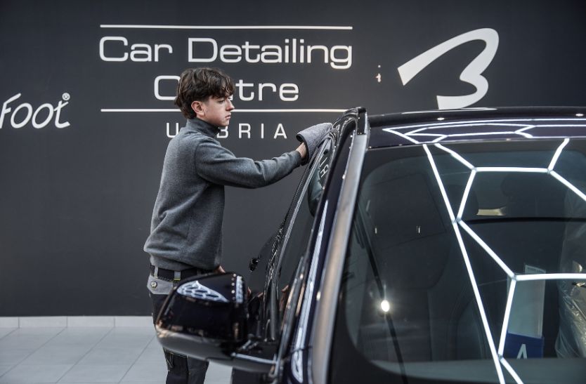 Partiamo da un prelavaggio delicato con guanti in microfibra per ridurre al minimo i micrograffi ed evitare danneggiamenti.